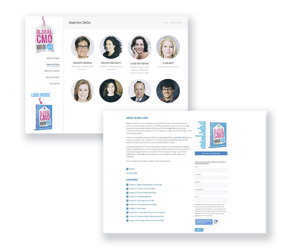 In collaboration with the marketing team and consultants, I created the layout for the book, cover and infographics to create a compelling editorial narrative: one chapter per CMO and one to two infographics for their insights. The project included project management and third-party vendor management, delivering print-ready files to our printer.